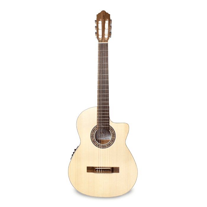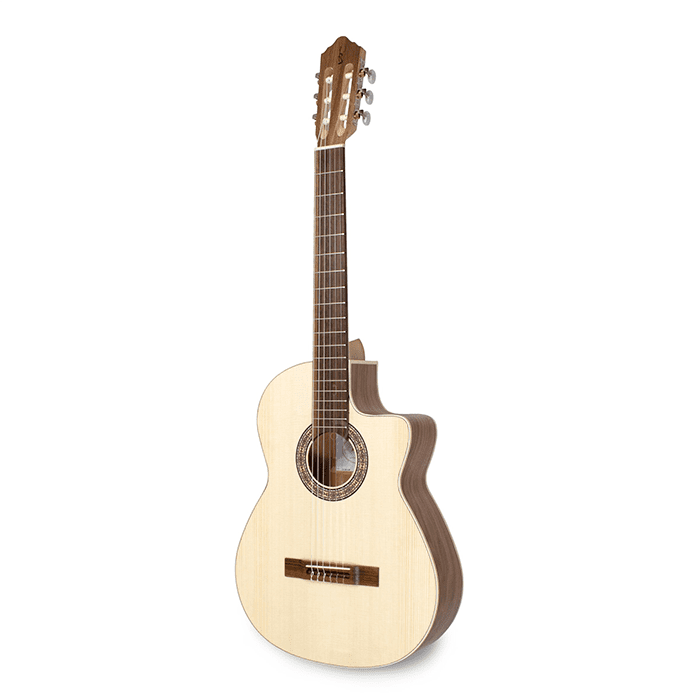 Classical guitar 5S OP CW model handmade by APC in Portugal. With its solid spruce top and high quality walnut back & sides, this guitar offers both incredible resonance and strong projection. Amplify and add effects to this guitar with the built in Fishman pick-up.