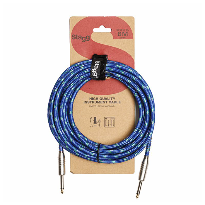 Stagg Instrument Cable 6m Vintage Tweed Style Blue