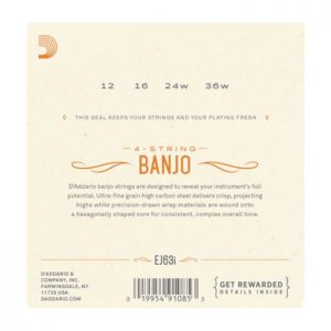 D’Addario EJ63i banjo sets are designed for the Irish Tenor Banjo, typically tuned in fifths and played with a “plectrum” picking style.