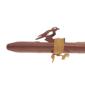 The Sparrow Hawk flute is a good accompaniment flute for the Contra Bass “A” flute and the Pocket Flute in the key of “A”. It is deeper in tone than the White Tail Hawk Flute “B”.
