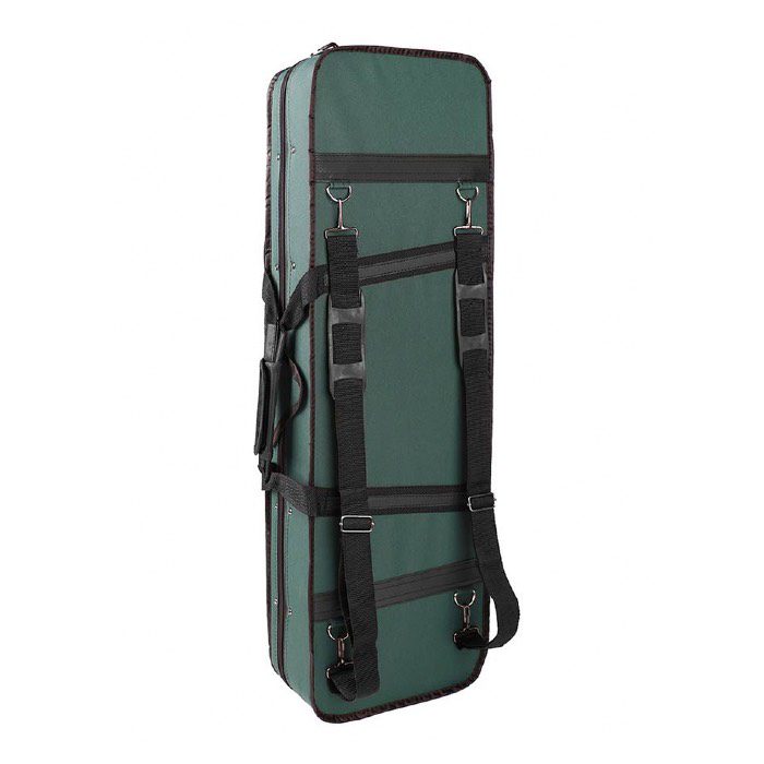 Oblong case in polyfoam with 2 rucksackstraps, a closed space for accessoires and 4 bow holders