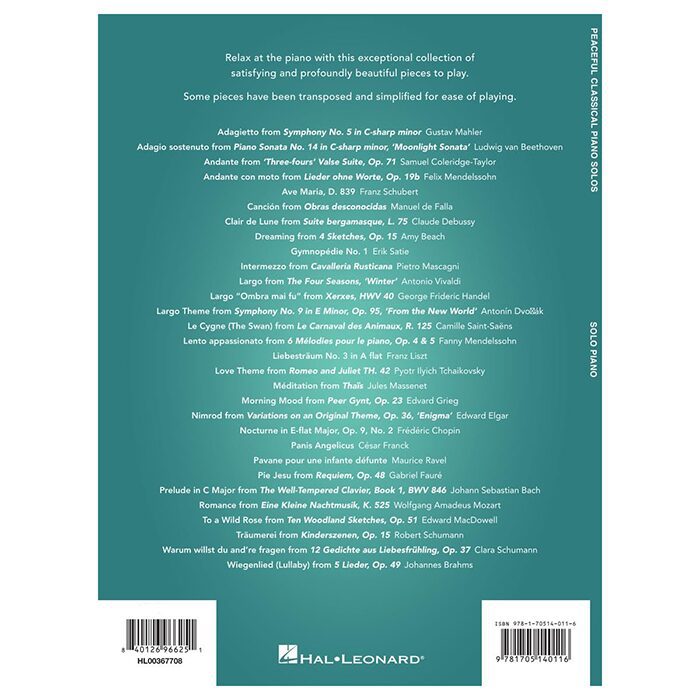 Peaceful Classical Piano Solos list of pieces: